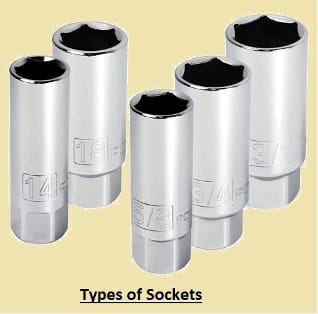 Different sizes exist for sockets that are used for different applications; according to ratchet type, they are made to be used with or without fasteners, where employed. Commonly used socket types are mentioned here.