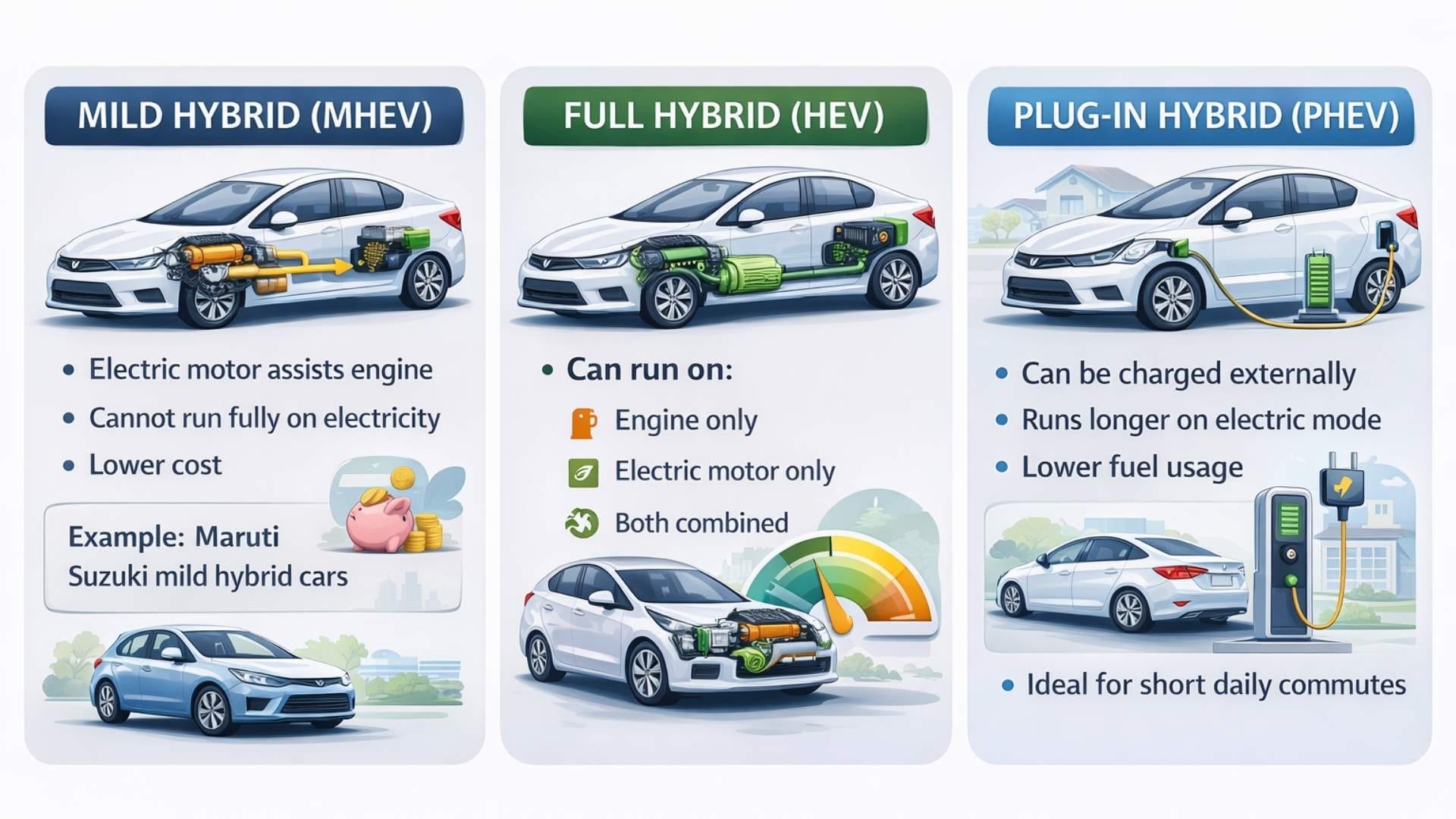 Types of Hybrid vehicles Leave a Comment / By Pankaj Mishra / April 7, 2026 Related Posts:Hybrid or semi hydraulic power steering systemadvantages of hybrid carselectric car vs hybrid carWhat is a hybrid carWhy a Hybrid Taxi Could be the Right Choice?Electric and Hybrid AircraftElectric and Hybrid AircraftDifference Between an Electric Car and a Hybrid Car